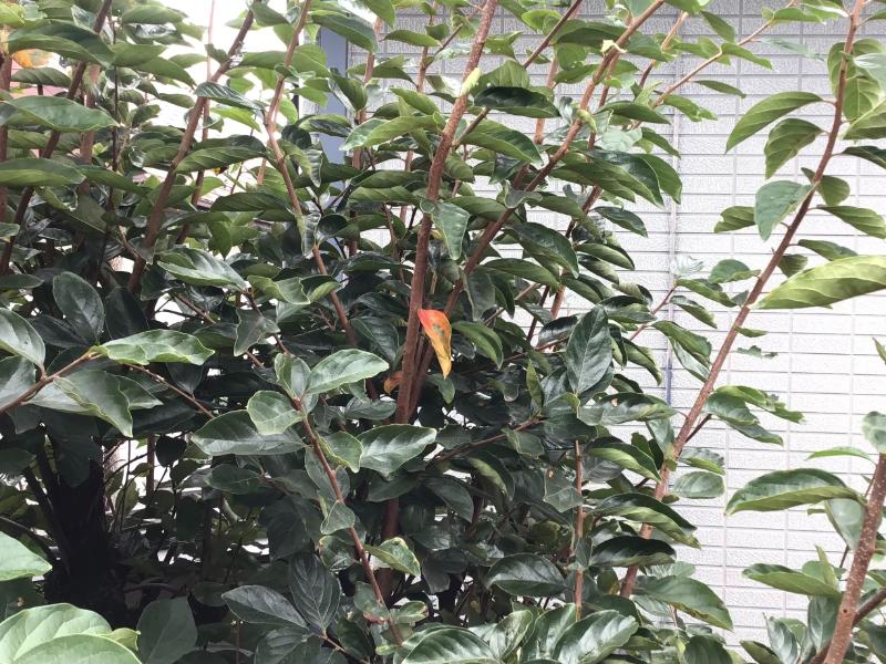 庭の柿の木、ちょっぴり紅葉していましたよ。