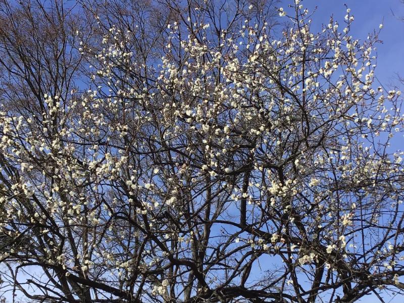 踏み出す足を意識しながら、目に触れ耳に触れるものを、そのまま受け止めながら歩いていると、通りかかった醸造試験所跡地公園で、遠くの植え込みに一本の白梅を発見。